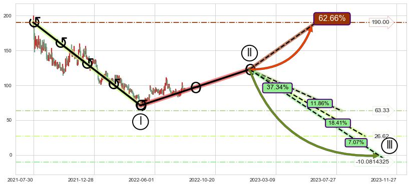 ➣ D点拟合预测价格130.20,距离最后交易收盘价格91.96相差 +41.58%