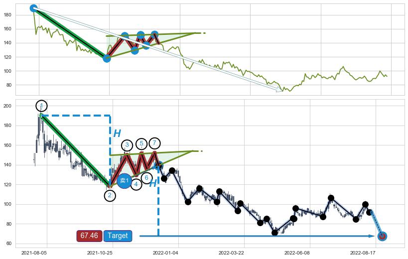 ➣ AI预测: 假定反转启动后, 第❶目标位置(2022-10-05, 88.29)