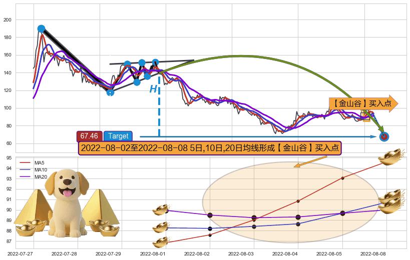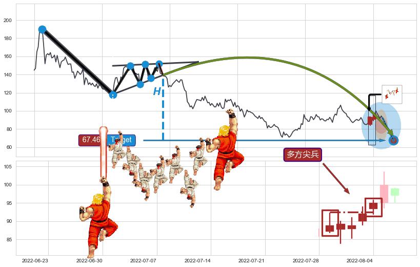 ➣ 【已确认突破】最后价格:91.96与最小【整理】第一目标价格→(2022-08-24: 67.46 )相较: 下跌空间【较小】