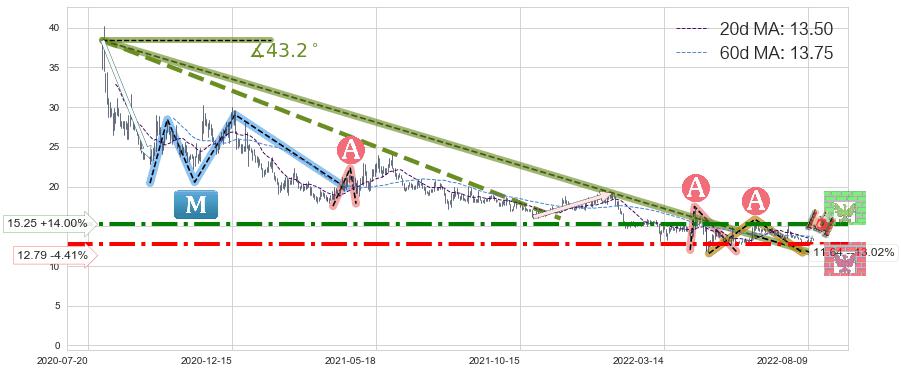 ➢ 【已确认突破】最后价格:13.38与最小【整理】第一目标价格→(2022-11-08: 7.52 )相较: 下跌空间【较大】