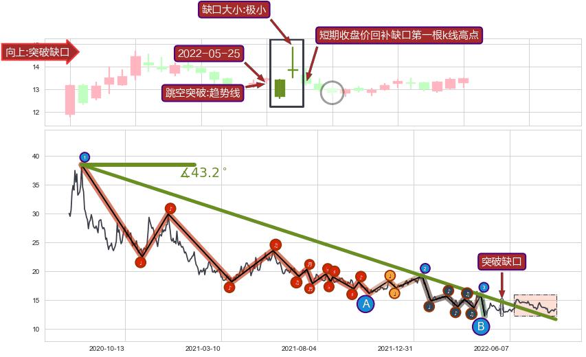 ➢ 最后的下跌趋势2020-08-03至2022-06-16:存在突破迹象,后续小反弹或者反转上涨
