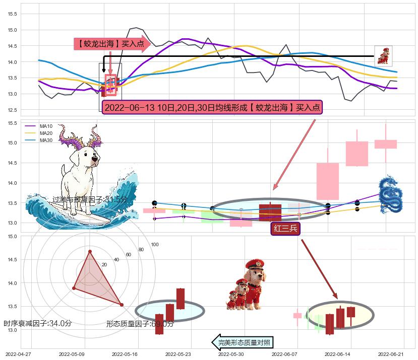 ➢ 收盘价(2022-05-30: 12.84 )→回踩→第一根k线高点(2022-05-24: 13.43 )