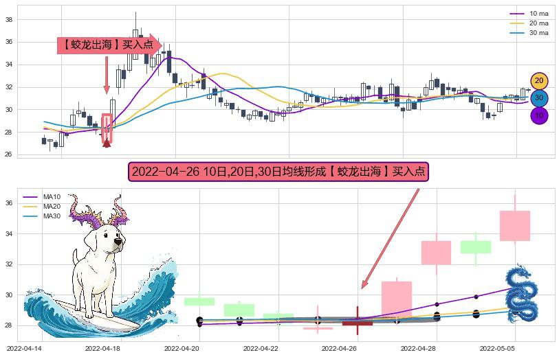 ⚀ 2022-04-26日显现 10日-20日-30日均线 【蛟龙出海】买入点 看多信号,后市看涨,买入