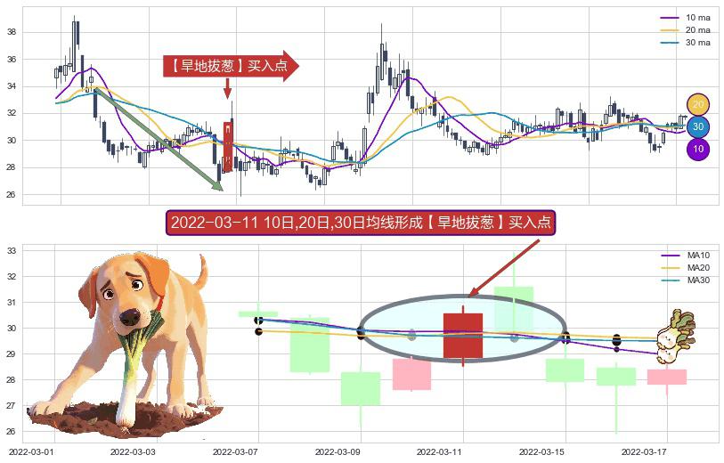 ⚀ 2022-03-11日显现 10日-20日-30日均线 【旱地拔葱】买入点 看多信号,后市看涨,买入