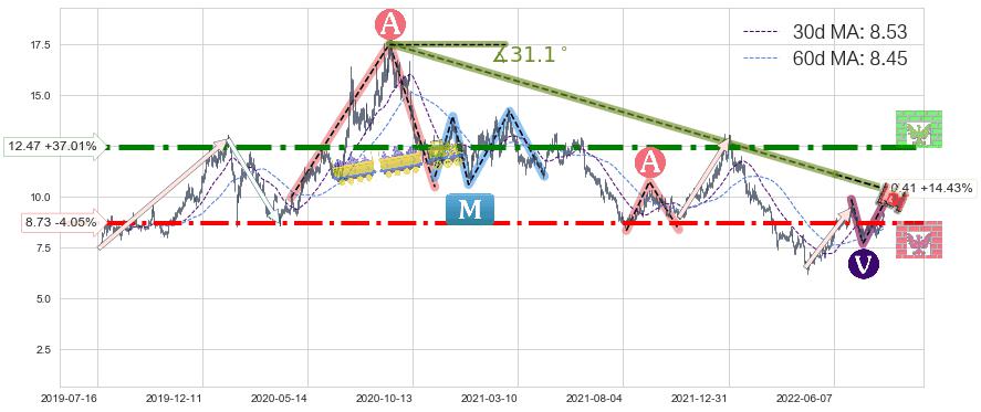 ♘ 支撑价格位8.73,可信任强度84.56%,距离最后交易2022-08-12形成的收盘价格9.10相差 -4.05%