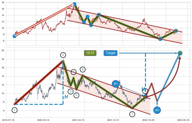 ➣ 最小中继整理涨幅→𝐇: 10.10 (𝐇旗杆的长度:旗杆起点→顶点)