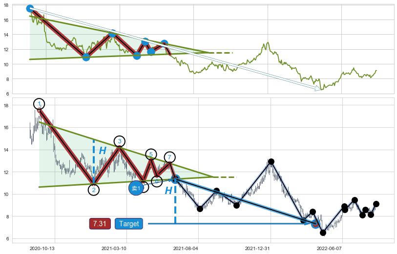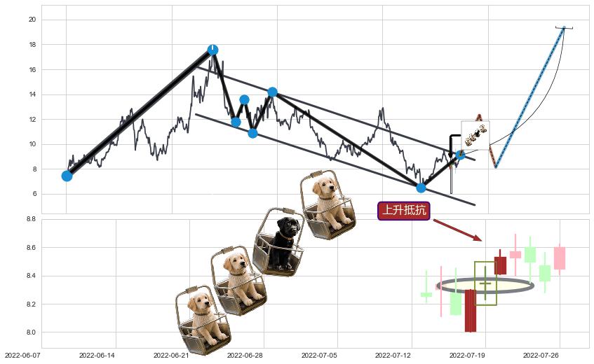➣ 【已达成】最小【整理】第一目标价格→(2022-04-11: 7.31 ), 后续继续【整理】下跌动力依然存在,下跌空间适中