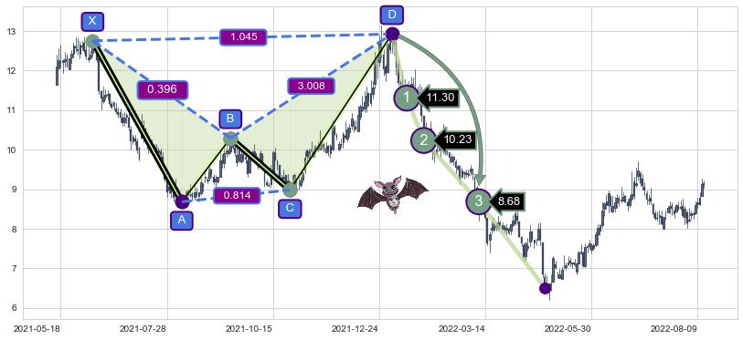 ➣ 已完成【蝙蝠】形态起点X: 2021-06-08, 终点D: 2022-01-04, 共142交易日
