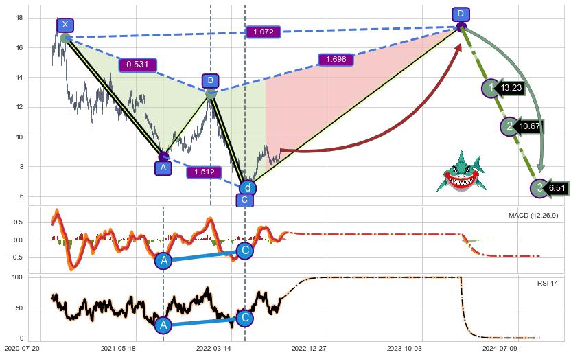 ➣ 未完成【鲨鱼】形态起点X: 2020-09-30, 已到达C点: 2022-04-25, 预测最终D点: 2024-01-24, 共799交易日