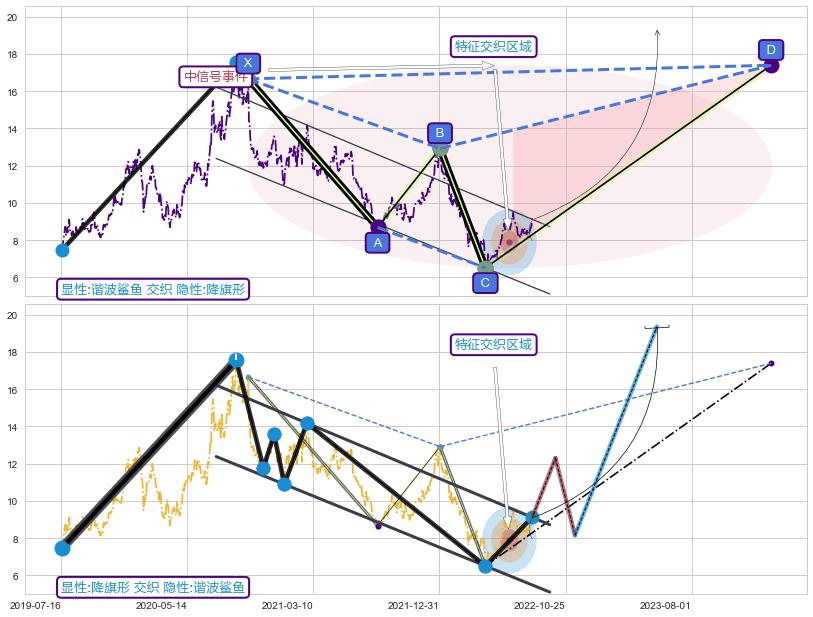 | 7 🅚:【烘云托月】买入点 ➕ 📡:谐波鲨鱼猜想c点下沉击穿越过b点后报复性拉升上涨(均值回复) ☞ 看多信号 ⇥ 【均线】交织【图形】⇥ 综合量化分数: 51 | > |