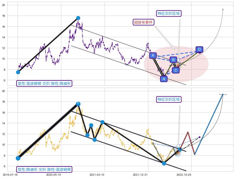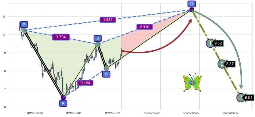 ➣ 未完成【蝴蝶】形态起点X: 2022-02-10, 已到达C点: 2022-07-15, 预测最终D点: 2022-12-15, 共214交易日