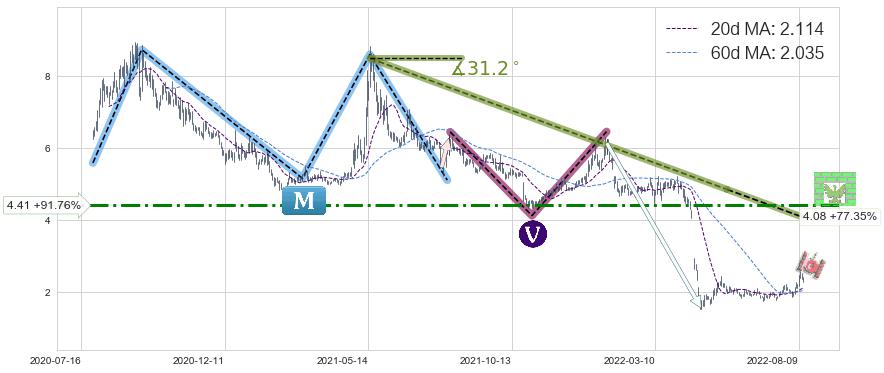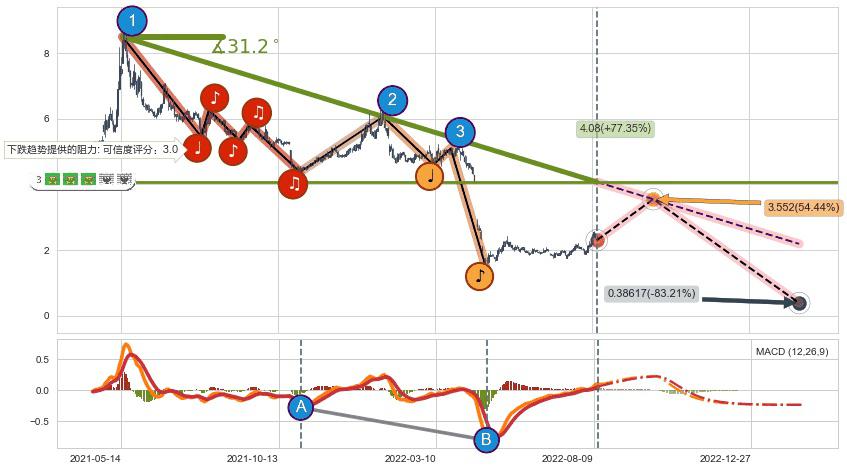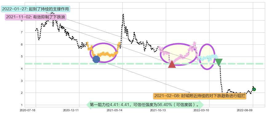 ♘ 阻力价格位4.41,可信任强度56.40%,距离最后交易2022-08-12形成的收盘价格2.300相差 +91.76%