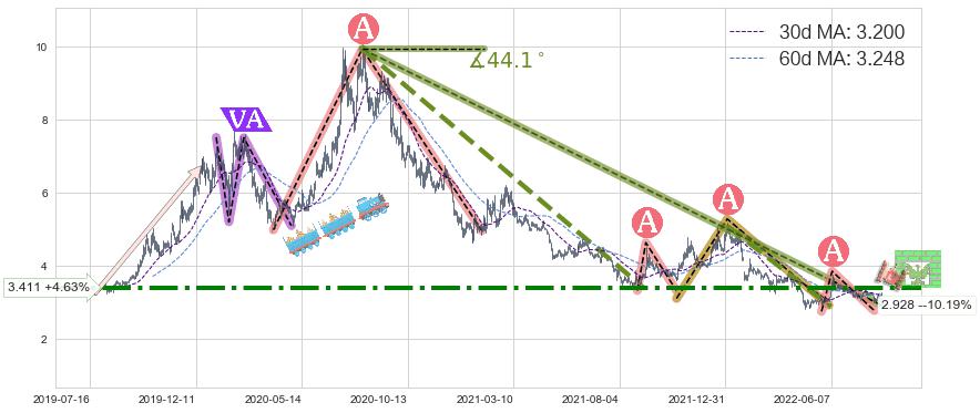 ♞ 30日均线:3.200,60日均线:3.248→ 快线<慢线
