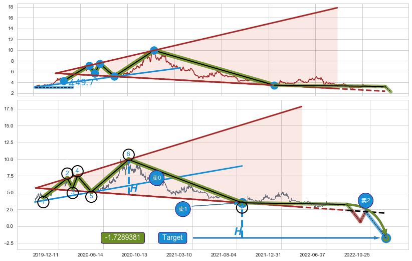 ➣ 【仅预测突破】最后价格:3.260与预测突破价格:3.500→【空间临近】后续最小【反转】第一目标价格→(2022-12-14: -1.7289381 )