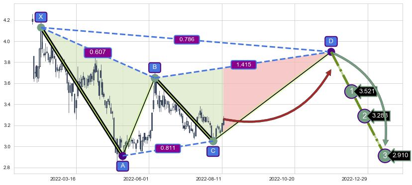 ➣ D点拟合预测价格3.899,距离最后交易收盘价格3.260相差 +19.60%