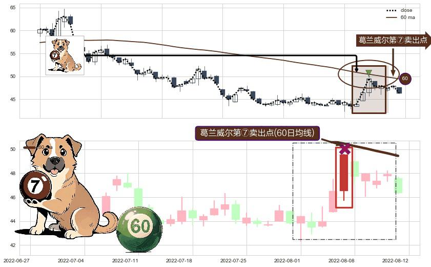⚀ 2022-08-05-日显现 葛兰威尔均线 60日均线 第⑦卖出点 下降趋势的中继信号,后市看跌,卖出信号