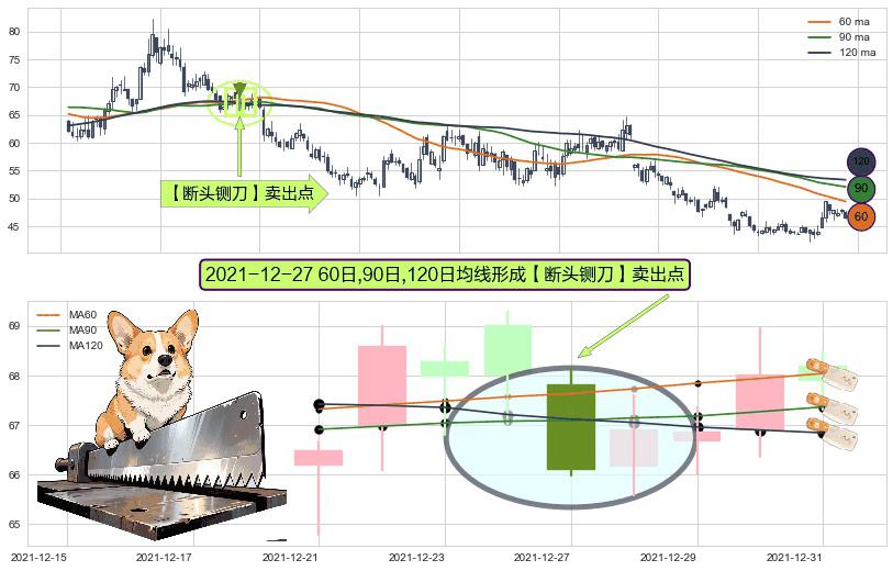 ⚀ 2021-12-27日显现 60日-90日-120日均线 【断头铡刀】卖出点 看空信号,后市看跌,卖出