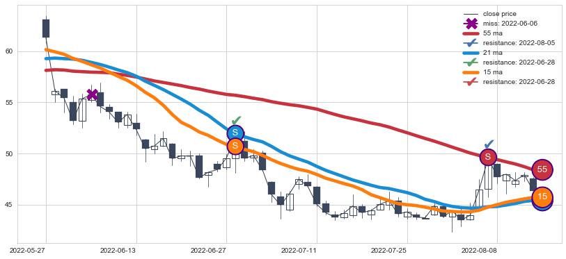 ⚂ 2022-05-25-日均线向上突破,2022-05-30-日重新下穿均线破位,均线阻力再次生效