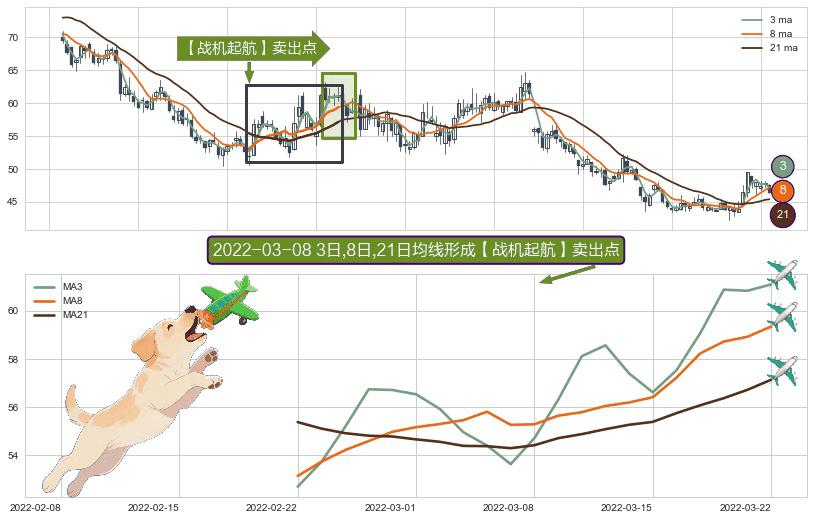 ⚀ 2022-02-22日-2022-03-22日显现 3日-8日-21日均线 【战机起航】卖出点 看空信号,后市看跌,卖出