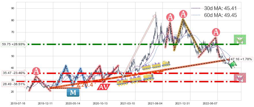 ♞ 30日均线:45.41,60日均线:49.45→ 快线<慢线