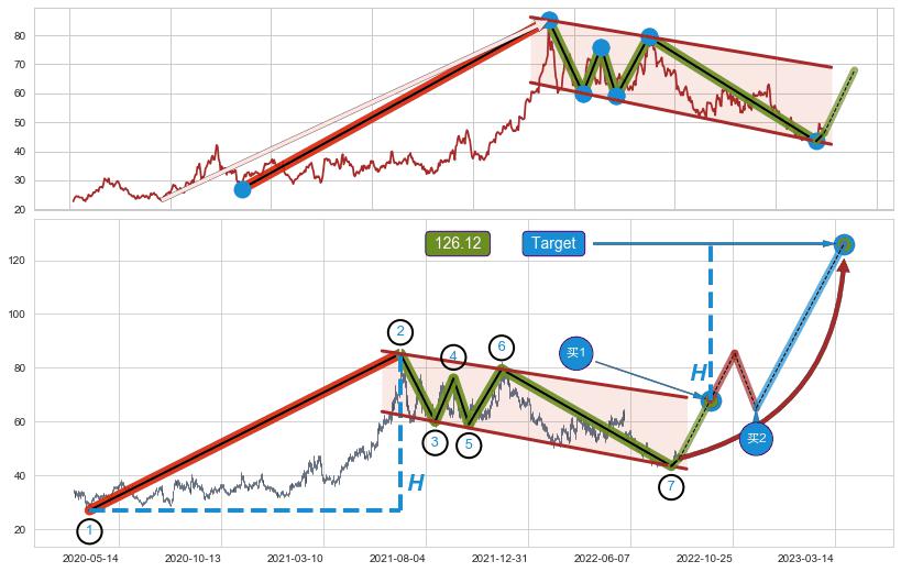 ➣ 最小中继整理涨幅→𝐇: 58.19 (𝐇旗杆的长度:旗杆起点→顶点)