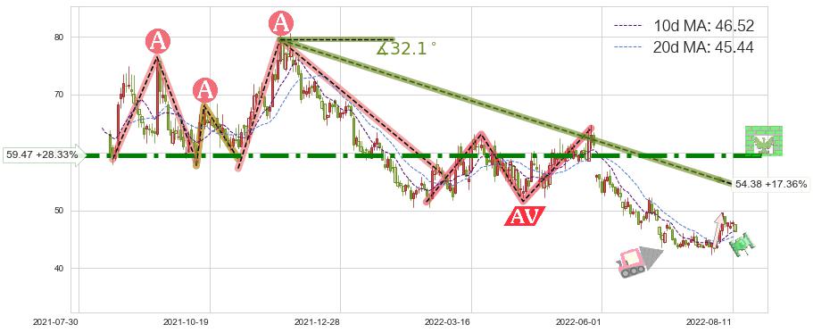 ➢ 【仅预测突破】最后价格:46.34与预测突破价格:51.17→【空间较大】后续最小【反转】第一目标价格→(2022-09-01: 56.87 )