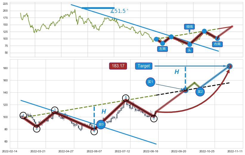 ➣ AI预测: 假定反转继续,第❷价格目标位置(2022-11-29, 156.68)