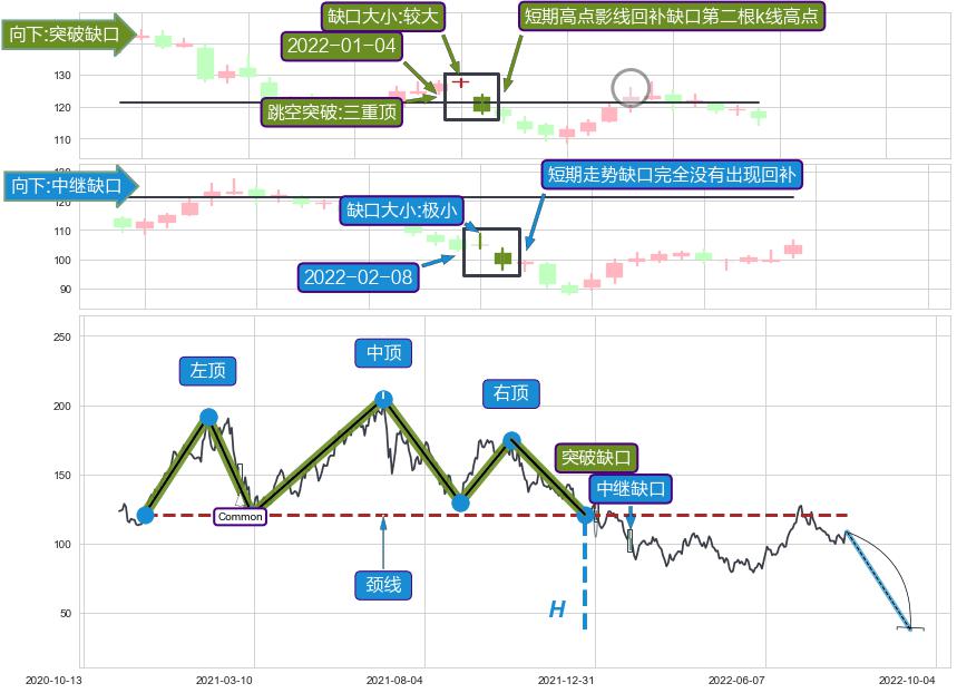 ➢ 【多方力量耗尽,空方打破攻守平衡点】下降三角形中继整理, 已在2021-12-17突破【支撑】颈线 130.00 →演变成下降通道