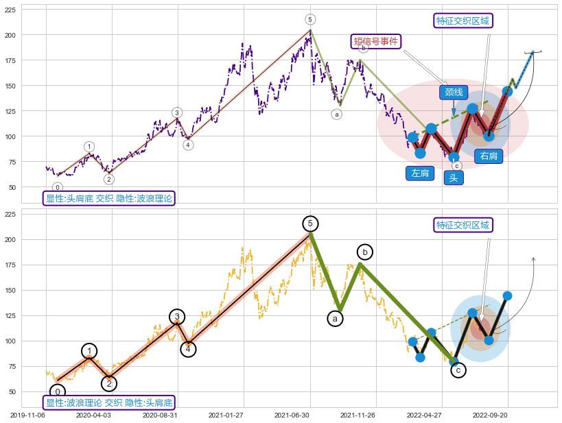 | 23 🅚:下跌抵抗 ➕ 🌊:波浪理论上涨5浪延续回调:猜想回调C点击穿破位,猜想持续蓄力回调abc下跌方向(大周期趋势均值回复后小周期持续趋势跟踪) ☞ 看空信号 ⇥ 【🅚线】交织【图形】⇥ 综合量化分数: 44 | > |