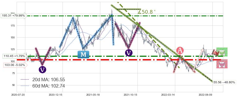 ♘ 阻力价格位110.45,可信任强度73.13%,距离最后交易2022-08-12形成的收盘价格108.51相差 +1.79%