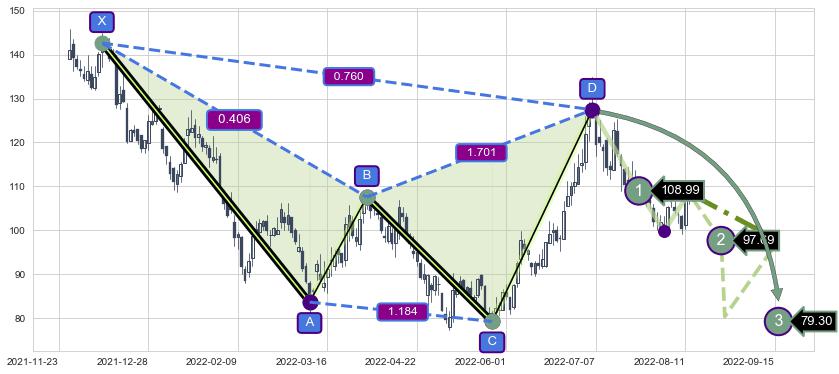 ➣ 已完成【蝙蝠】形态起点X: 2022-06-22, 终点D: 2022-08-03, 共31交易日