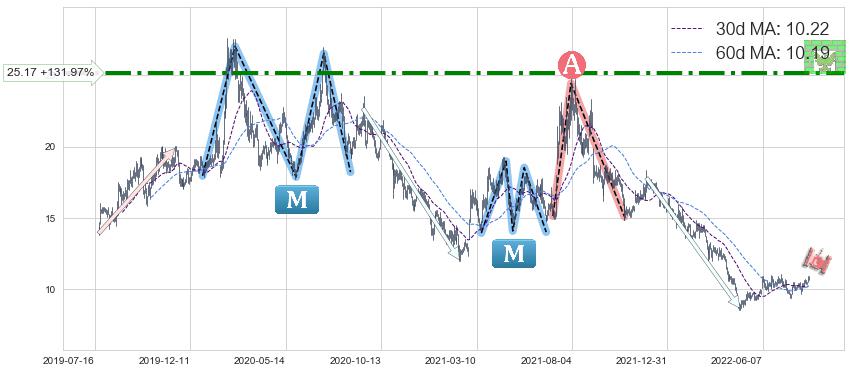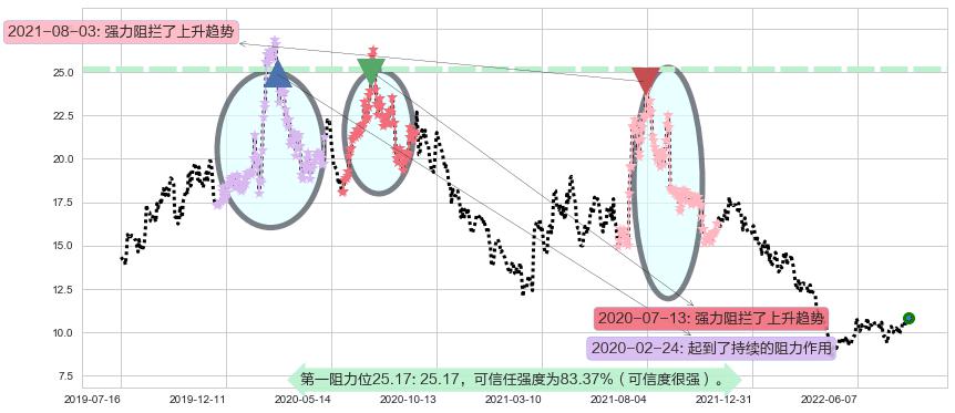 ♘ 阻力价格位25.17,可信任强度83.37%,距离最后交易2022-08-12形成的收盘价格10.85相差 +131.97%