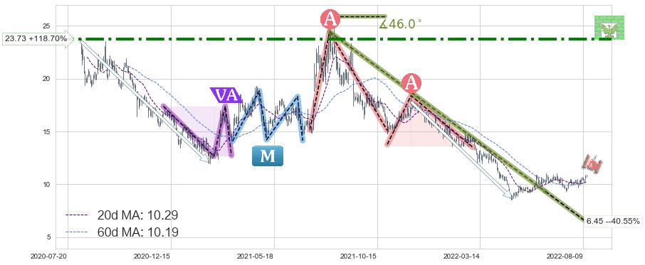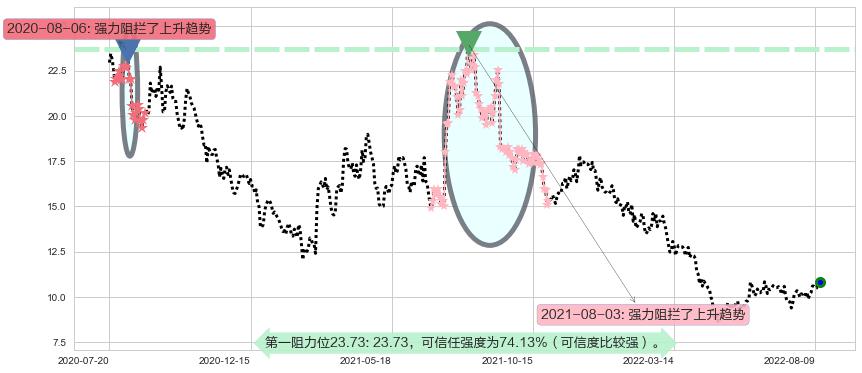 ♘ 阻力价格位23.73,可信任强度74.13%,距离最后交易2022-08-12形成的收盘价格10.85相差 +118.70%