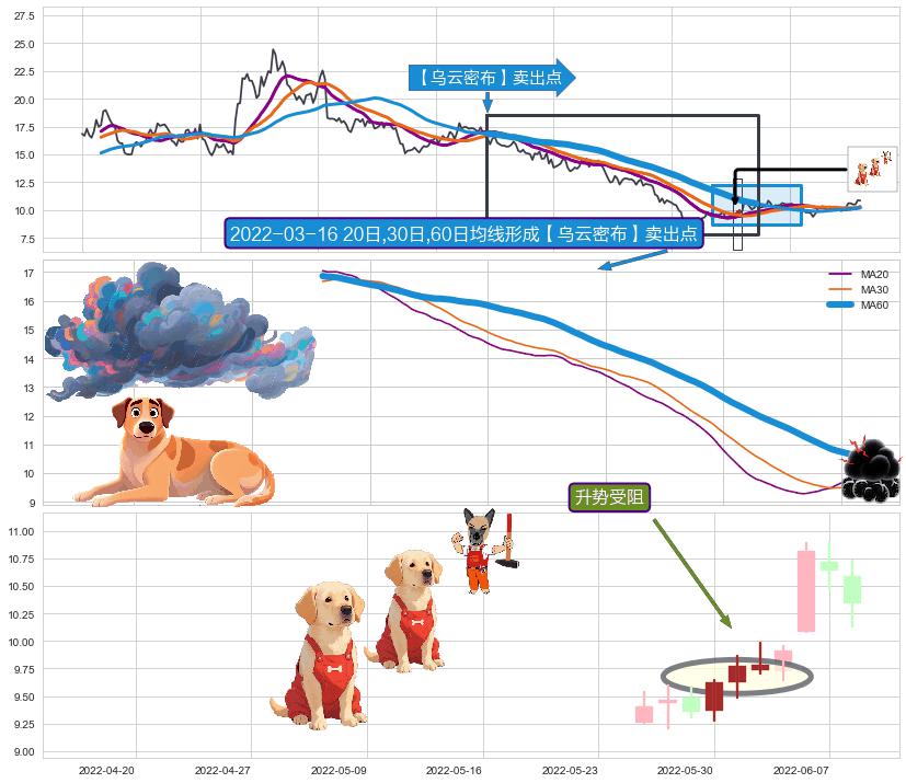| 2 🅚:看跌(高位倒锤头)流星线 ➕ 🎢:【乌云密布】卖出点均线组合卖出点信号形成后,猜想后续下行持续,下跌加速(趋势跟踪) ☞ 看空信号 ⇥ 【均线】交织【🅚线】⇥ 综合量化分数: 45 | > |