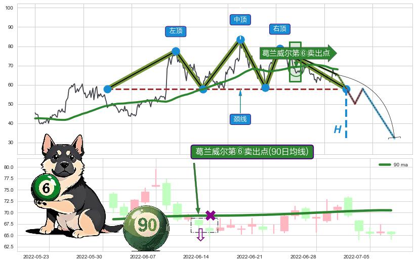 | 2 🅚:葛兰威尔第⑦卖出点 ➕ 📐:三重顶猜想突破点临近,临近关键支撑位,预期下沉突破下跌 ☞ 看空信号 ⇥ 【均线】交织【图形】⇥ 综合量化分数: 48 | > |