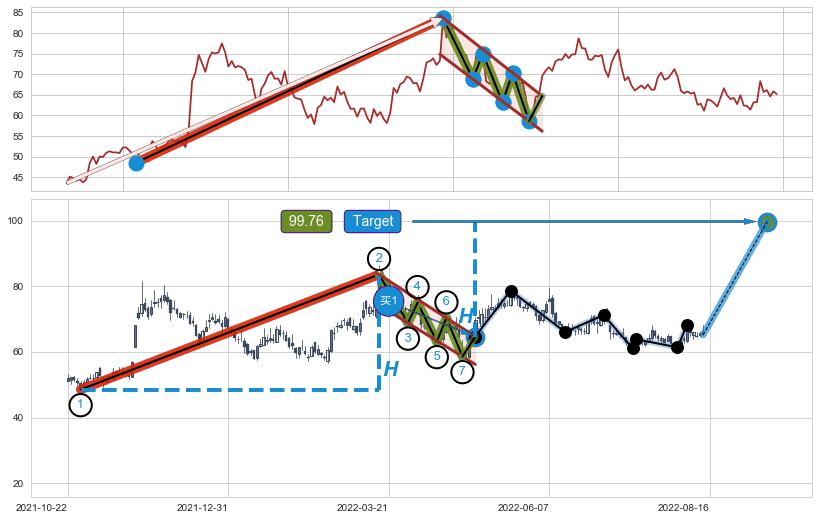 ➢ 2022-08-05到达第❶价格目标位置68.34