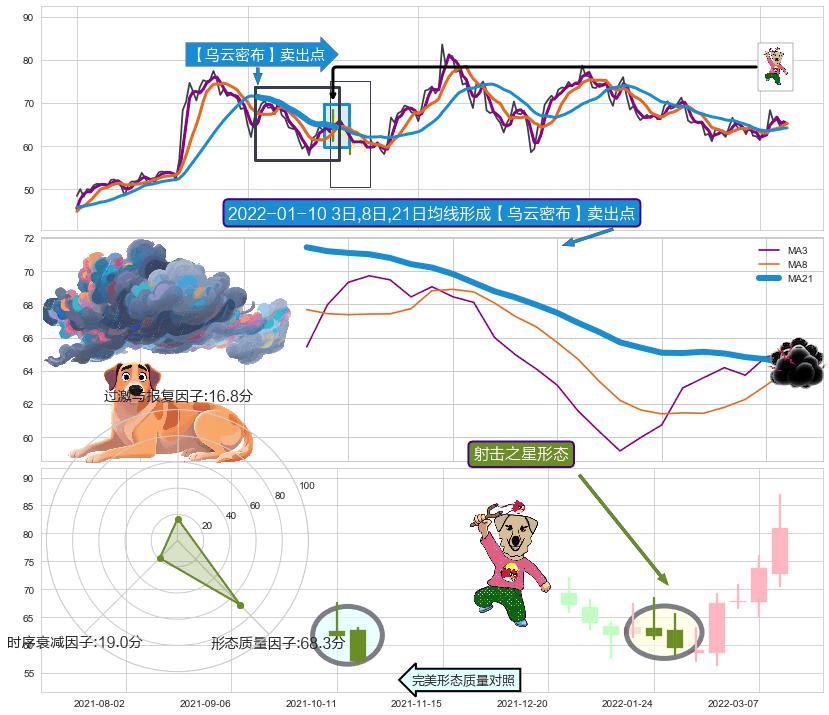 | 2 🅚:看跌(高位倒锤头)流星线 ➕ 🎢:【乌云密布】卖出点均线组合卖出点信号形成后,猜想后续下行持续,下跌加速(趋势跟踪) ☞ 看空信号 ⇥ 【均线】交织【🅚线】⇥ 综合量化分数: 48 | > |