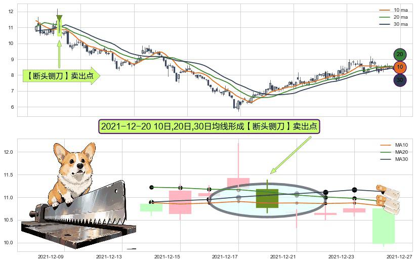 形态多维评估: ⚀ 2021-12-20日显现 10日-20日-30日均线 【断头铡刀】卖出点 看空信号,后市看跌,卖出
