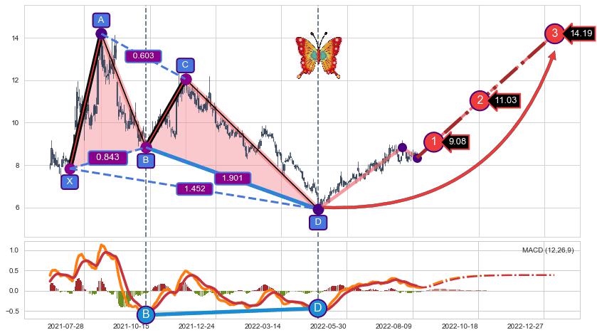 ➣ 已完成【蝴蝶】形态起点X: 2021-07-13, 终点D: 2022-04-25, 共190交易日