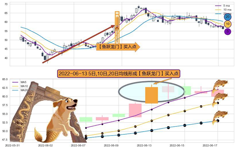 ⚀ 2022-06-13日显现 5日-10日-20日均线 【鱼跃龙门】买入点 看多信号,后市看涨,买入