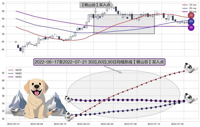 ⚀ 2022-06-20-日至2022-07-21-日显现 30日-60日-90日均线 【银山谷】买入点 看多信号,后市看涨,买入