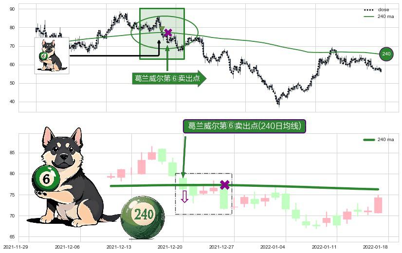 ⚀ 2021-12-20-日显现 葛兰威尔均线 240日均线 第⑥卖出点 走势反转见顶信号,后市看跌,卖出信号