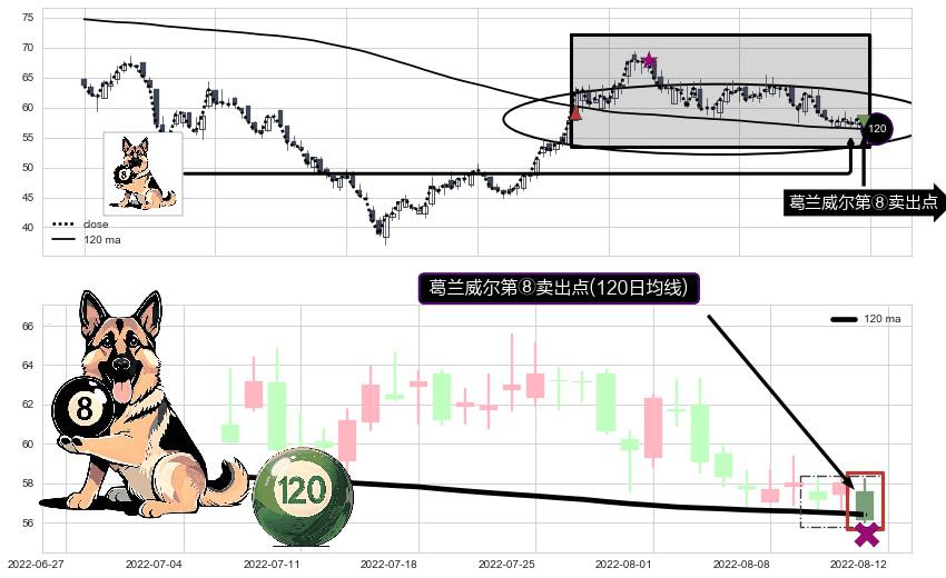 ⚀ 2022-08-12-日显现 葛兰威尔均线 120日均线 第⑧卖出点 下降趋势的中继信号,后市看跌,卖出信号