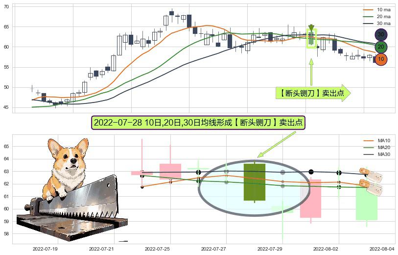 ⚀ 2022-07-28日显现 10日-20日-30日均线 【断头铡刀】卖出点 看空信号,后市看跌,卖出