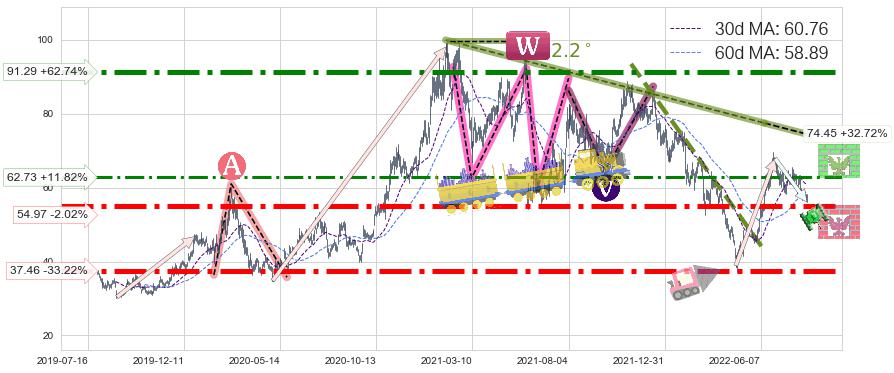 ♘ 阻力价格位62.73,可信任强度55.38%,距离最后交易2022-08-12形成的收盘价格56.10相差 +11.82%