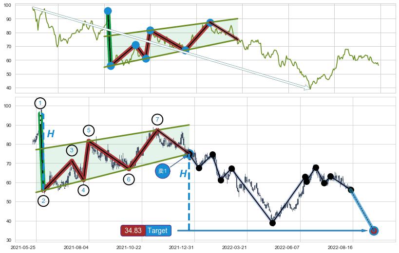 ➣ 最小中继整理跌幅→𝐇: 40.06 (𝐇旗杆的长度:旗杆起点→顶点)