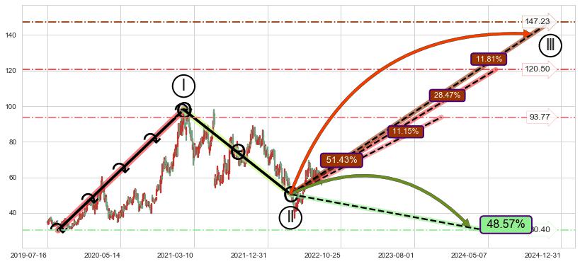 ➢ 2022-06-13到达第❶价格目标位置62.74