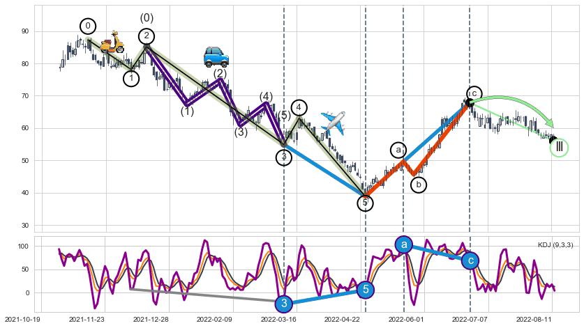 | 9 🅚:【毒蜘蛛】卖出点 ➕ 🌊:波浪理论下跌5浪延续:猜想C点强阻力小反弹终止,猜想保持下跌5浪方向下行(均值回复后大周期继续趋势跟踪) ☞ 看空信号 ⇥ 【均线】交织【图形】⇥ 综合量化分数: 22 | > |