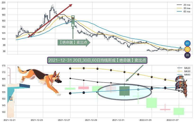 ⚀ 2021-12-31日显现 20日-30日-60日均线 【绝命跳】卖出点 看空信号,后市看跌,卖出