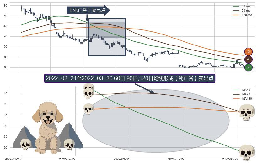 ⚀ 2022-02-22-日至2022-03-30-日显现 60日-90日-120日均线 【死亡谷】卖出点 看空信号,后市看跌,卖出